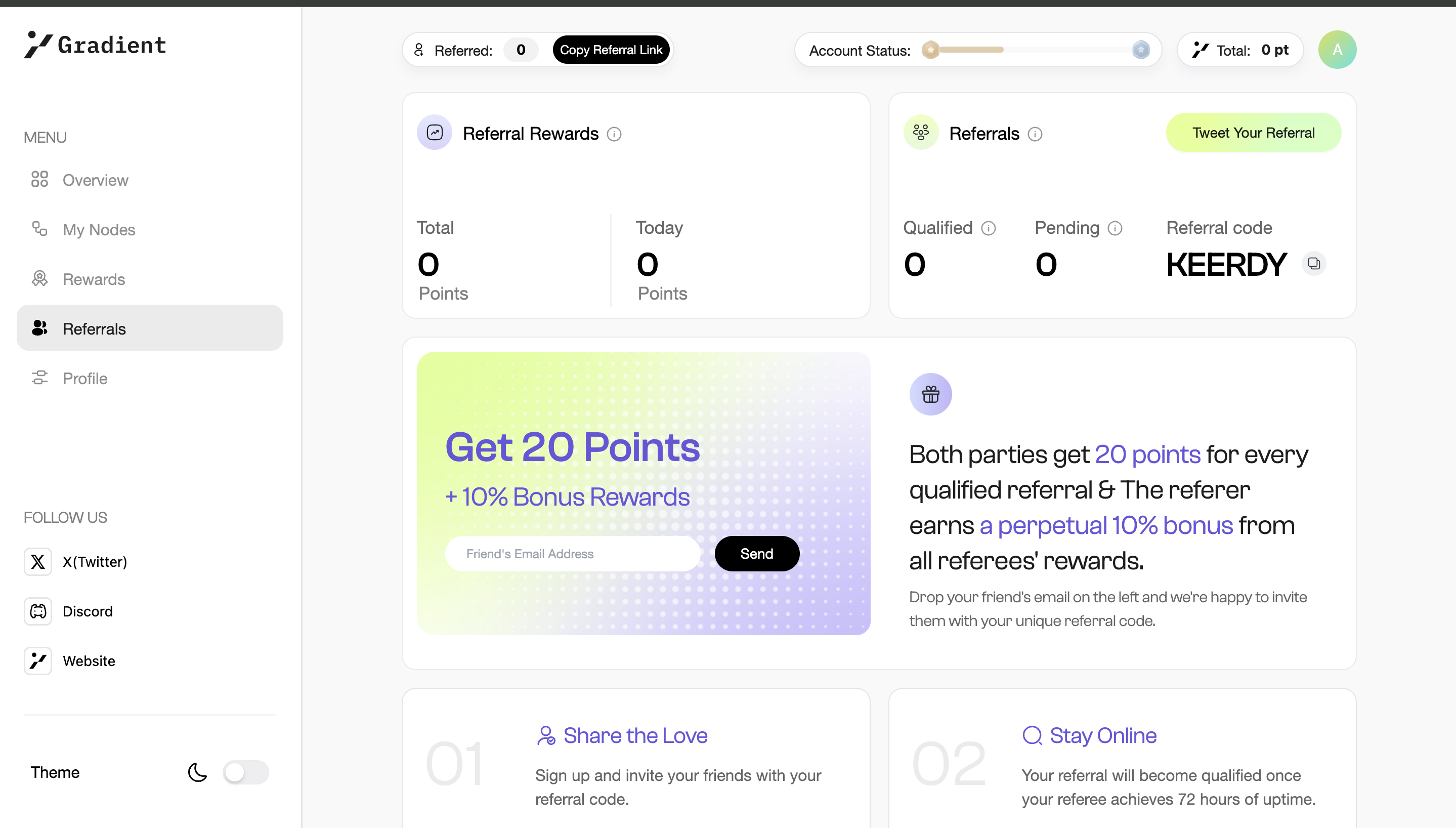 Enter KEERDY in the referral field during the signup process on Gradient Network’s website.